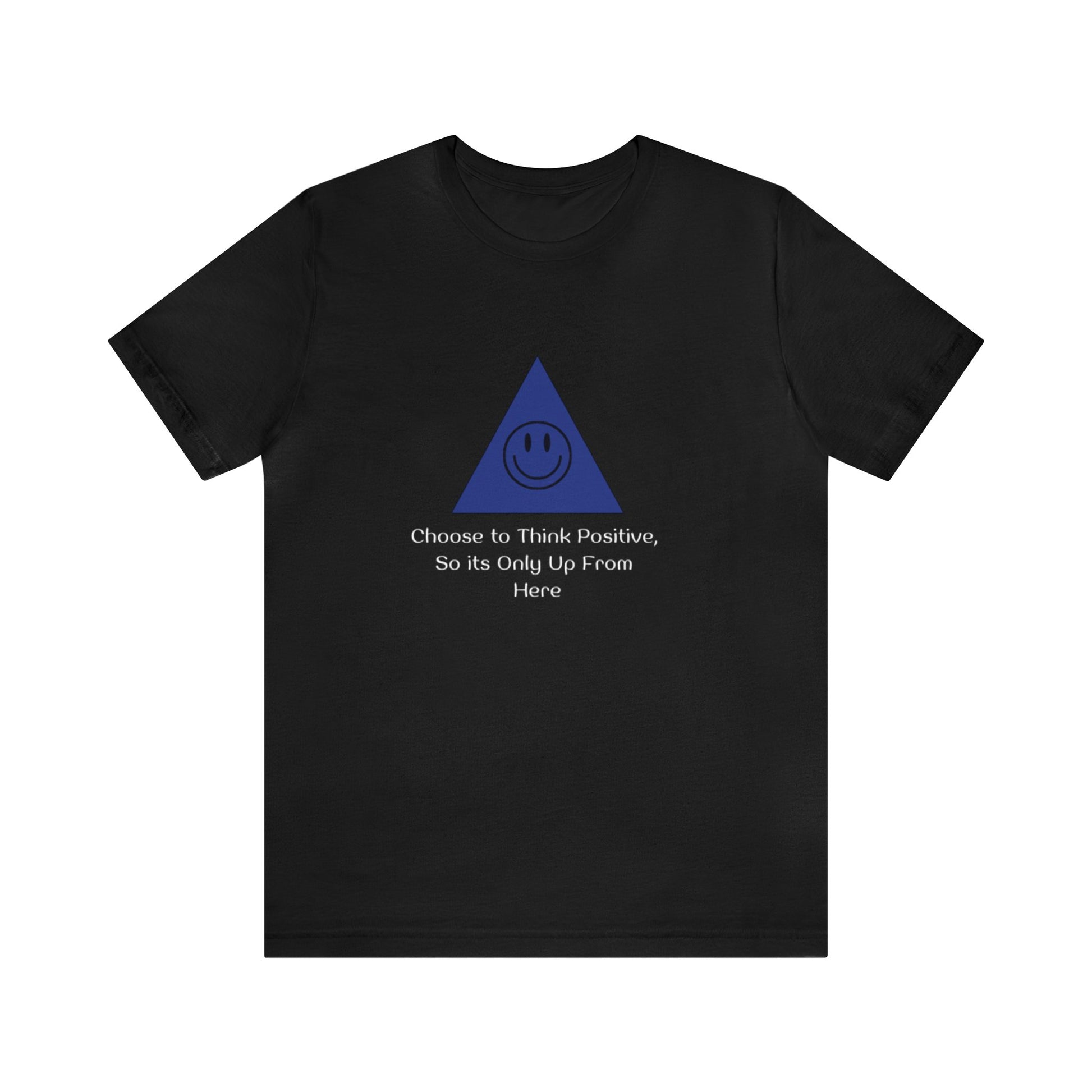 Positivity Awareness Design Features a triangle / pyramid with and smiley face in it, under the image is text saying "Choose to Think Positive, So its Only Up From Here"
